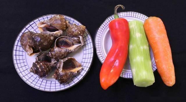 海螺,紅椒,胡蘿卜,萵筍。