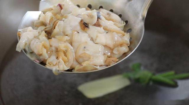 倒入片好的螺片,焯10秒左右的時間,撈出螺肉。